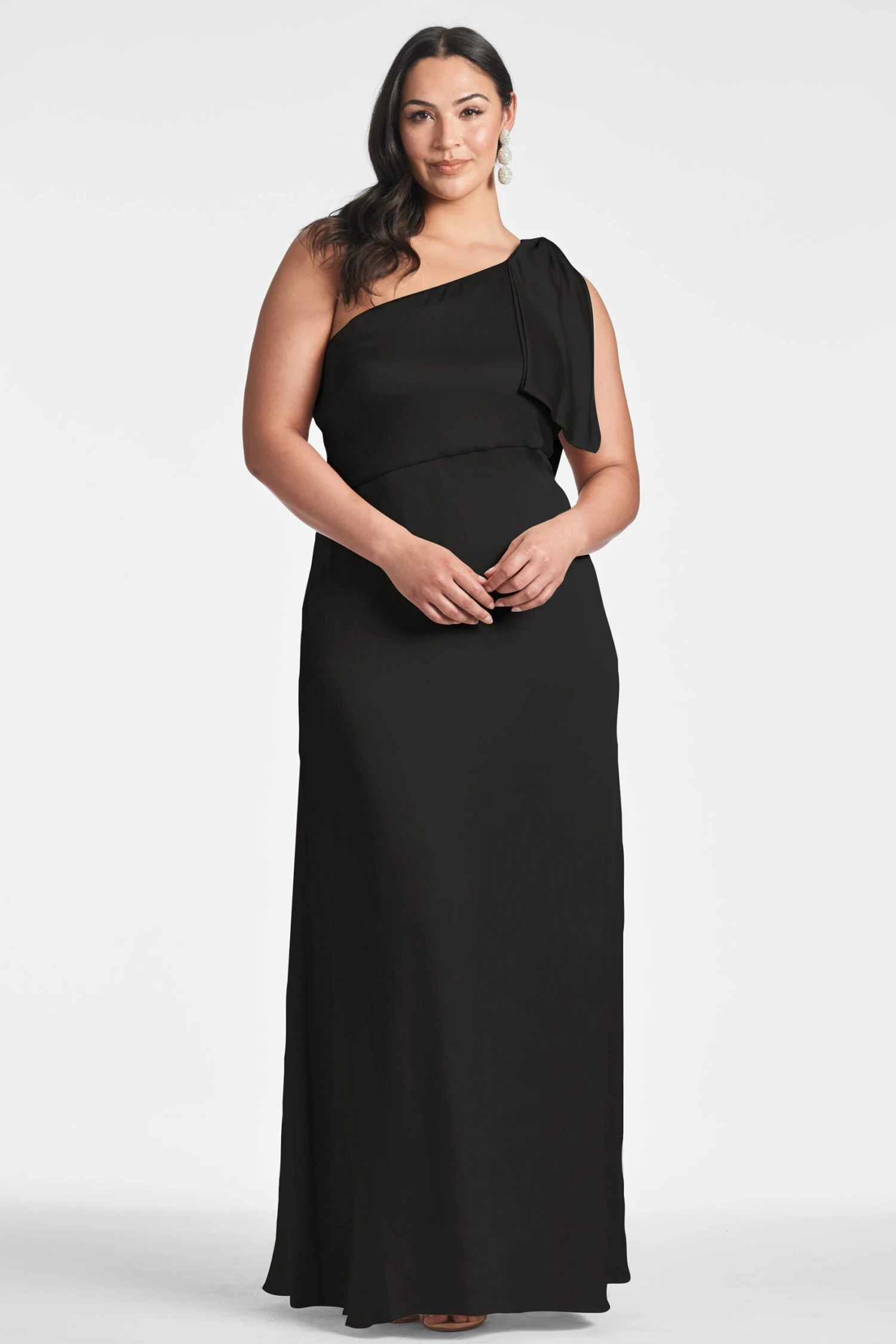 The Chelsea gown is an example of balance by design. A sleek sleeve of crinkle georgette is cut on the bias with an asymmetric seam at the waist, creating a column for curves. At the shoulder sits a hand-tucked, stitched-on collapsed bow. We design all of our Essential Social dresses with the intention that they can be enjoyed again and again. After all, a beautiful dress should be worn often and well.