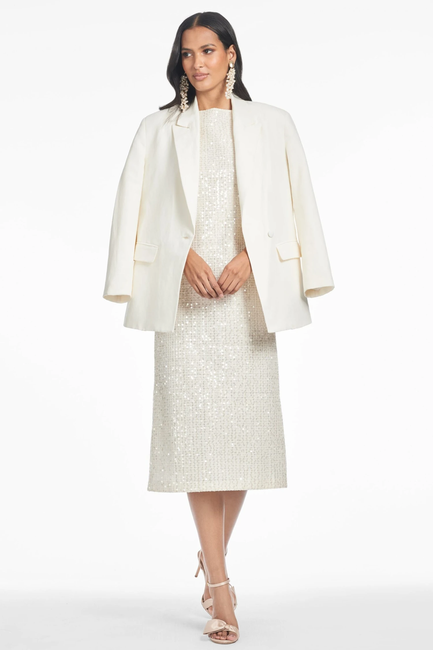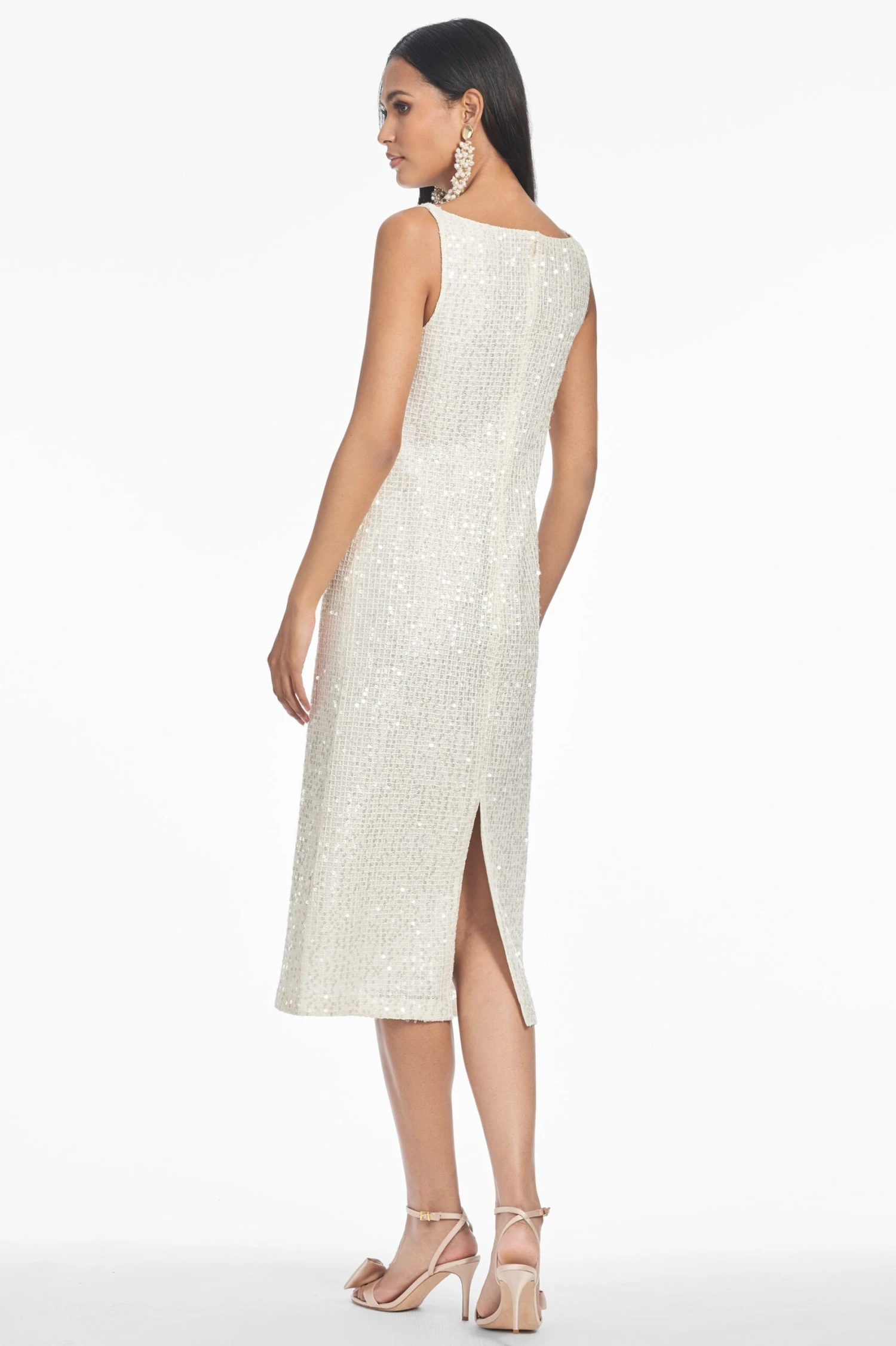 Sometimes the simplest of them all garners the most attention. This classic sheath dress is reimagined in an all-over sequin fabric that feels and looks like a sparkling linen tweed. A timeless dress, perfect for nearly any occasion.Â