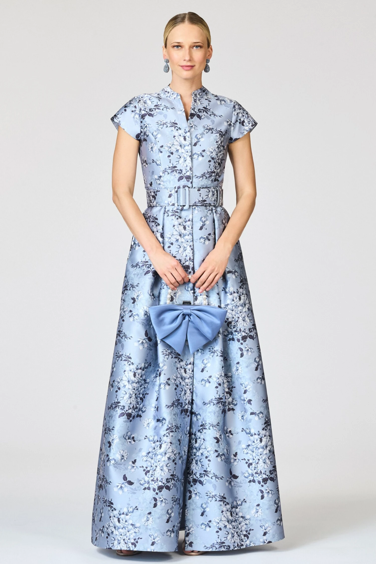 Make no mistake, the Marta Gown is no wallflower. She is the epitome of timeless, elevated personal style and quiet luxury. The fit and print are everything. The floor-length silhouette is partially inspired by the impeccable tailoring of a “shirt style” fit. This incredibly flattering body finds its way into our Iced Cherry Blossom print. A banded collar is tastefully cut away to meet concealed front summarys. Our Mikado fabric with the mono-color florals makes this dress a classic and a statement all at once.