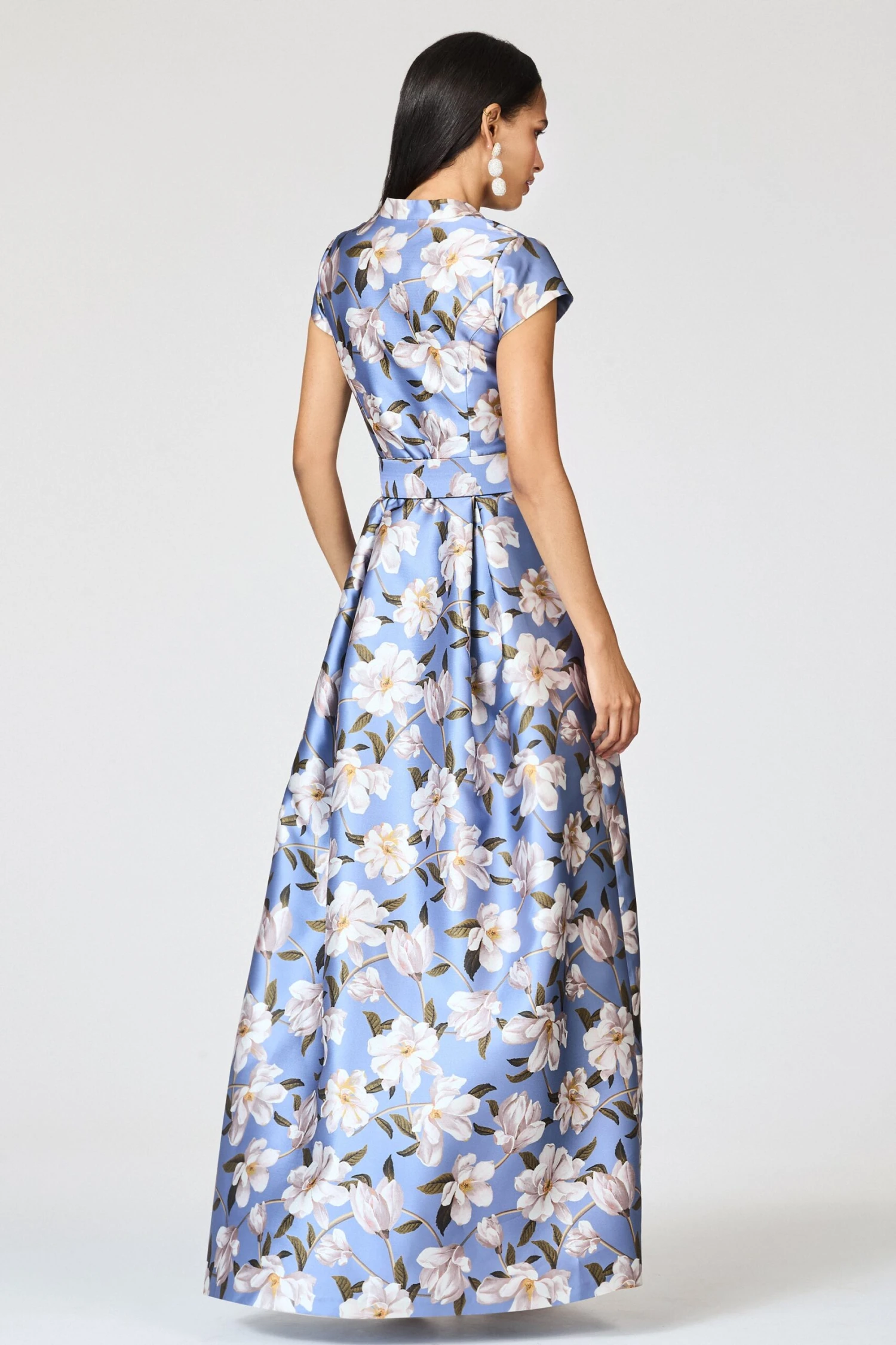 Make no mistake, the Marta Gown is no wallflower. She is the epitome of timeless, elevated personal style and quiet luxury. The fit and print are everything. The floor-length silhouette is partially inspired by the impeccable tailoring of a “shirt style” fit. This incredibly flattering body finds its way into our Twilight Magnolia print. A banded collar is tastefully cut away to meet concealed front summarys. Our Mikado fabric with the mono-color florals make this dress a classic and a statement all at once.