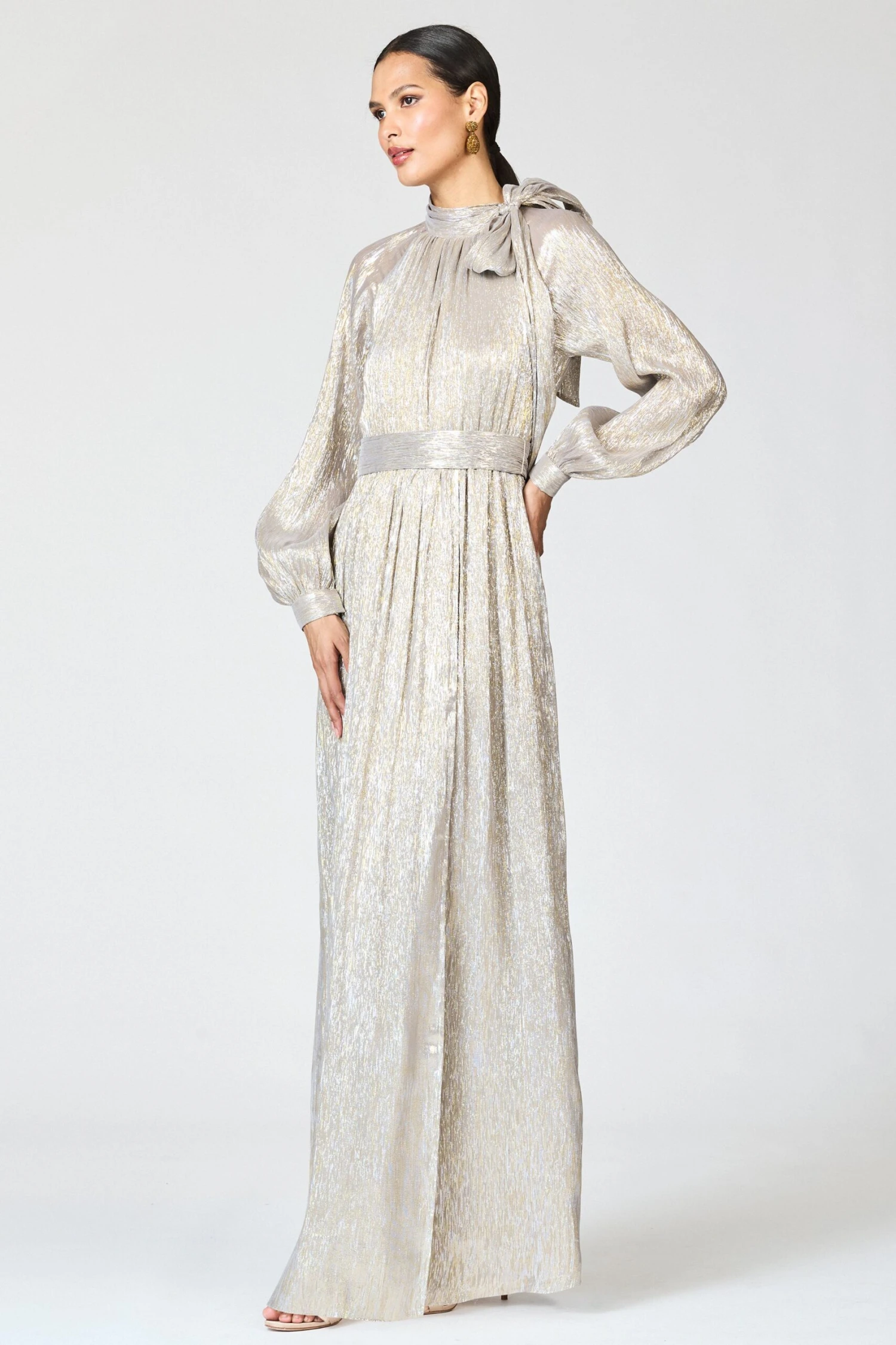 You only have to look at Vera to see her ethereal and elegant nature. She’s fluid, feminine, and flattering. A metallic lame dreamy maxi that can, and should, be the main character of any occasion.