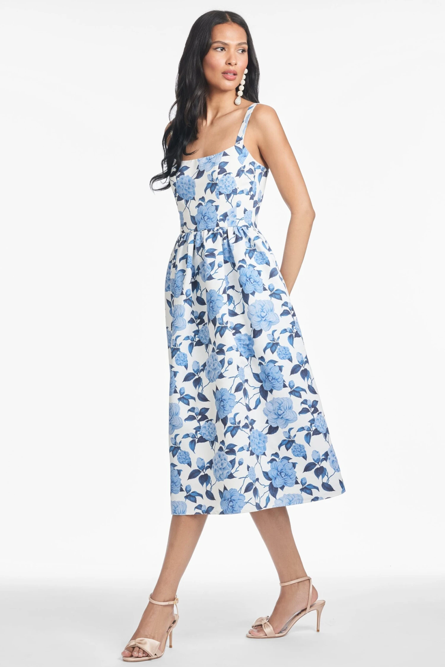 The Olena dress just made Spring and Summer dressing a lot more fabulous. This printed faille piece is covered in our Delft Blue Begonia print, with the most flattering fit and flare silhouette. She’s all class with a bit of romance in her moonlit garden print.